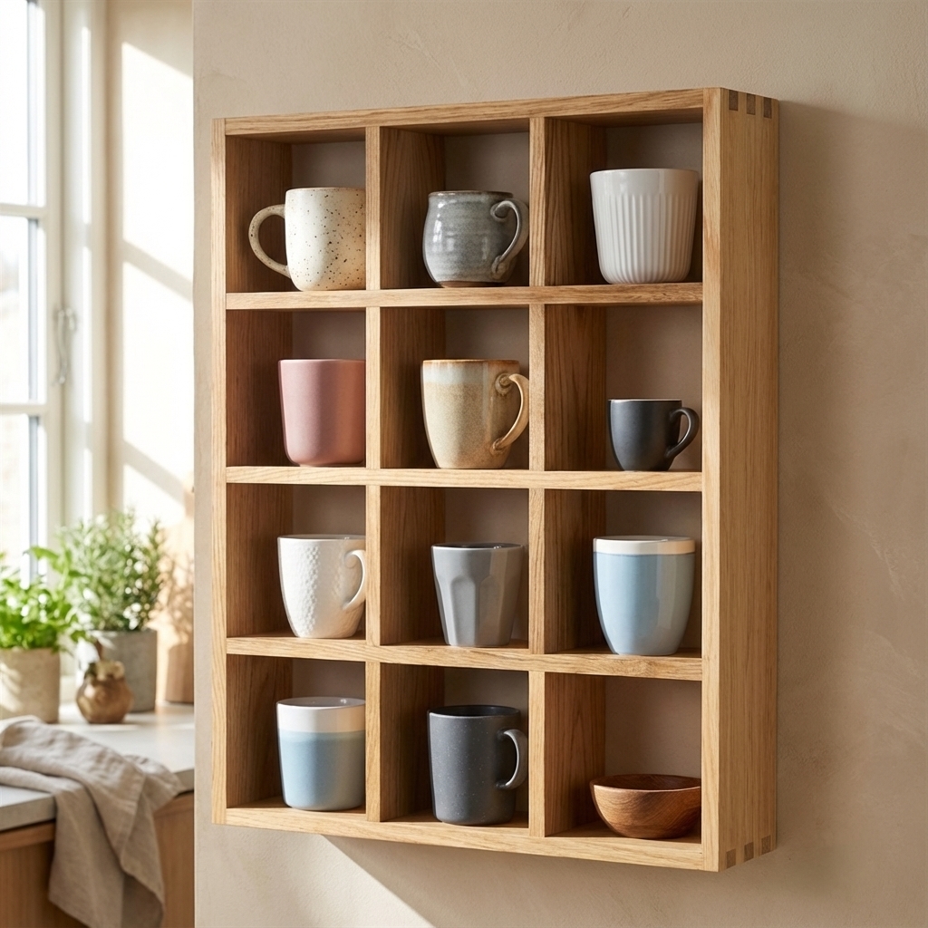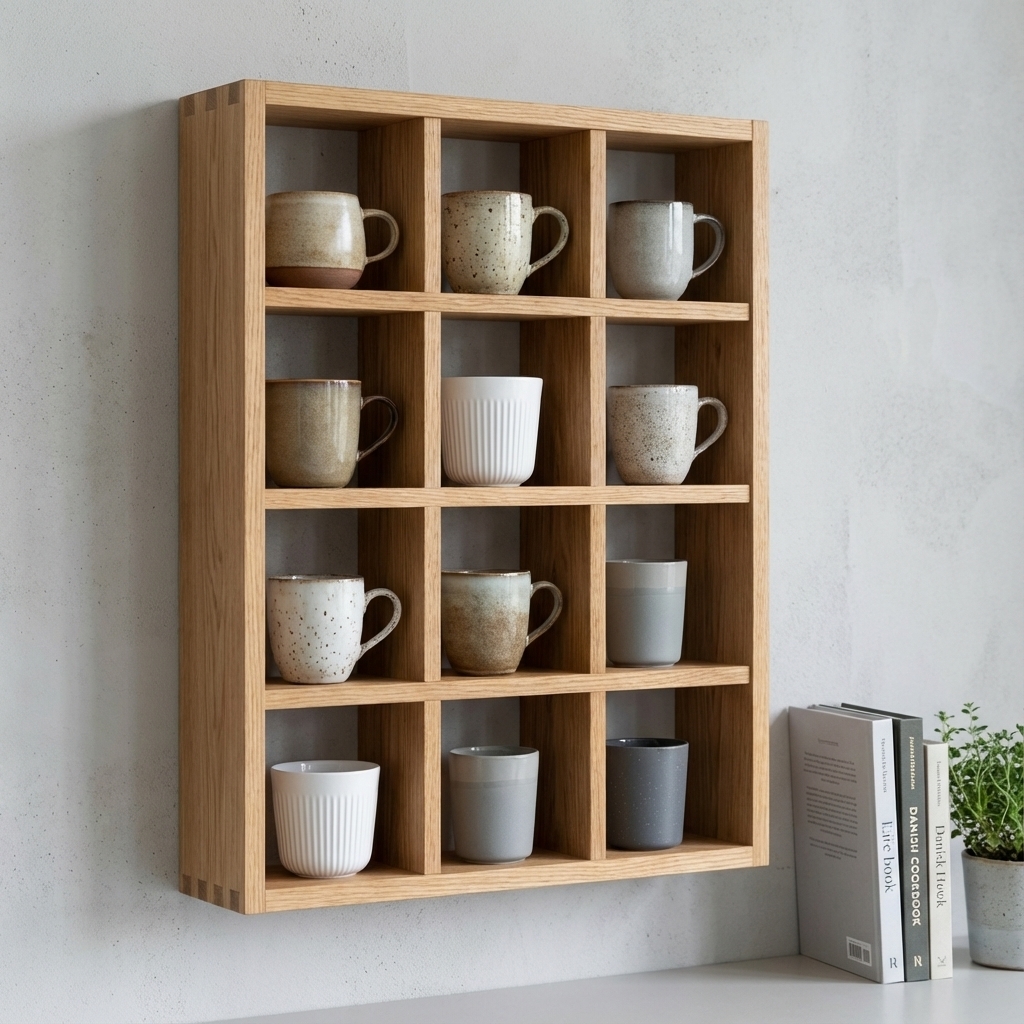 Det varme egetræ fremhæver uden tvivl dine kopper.