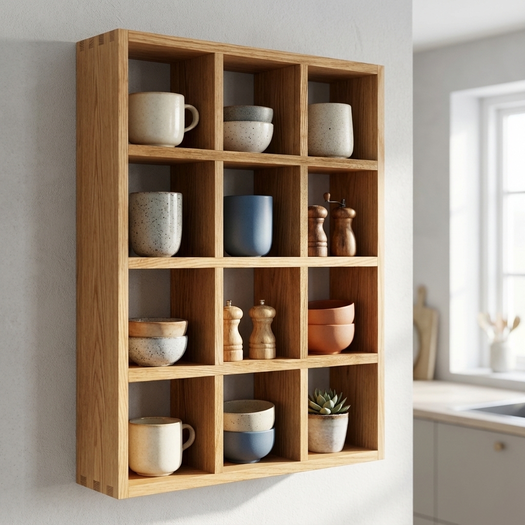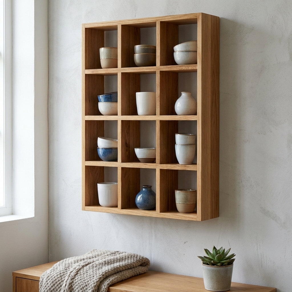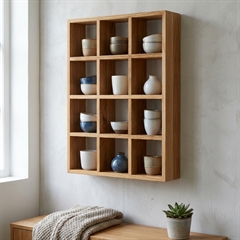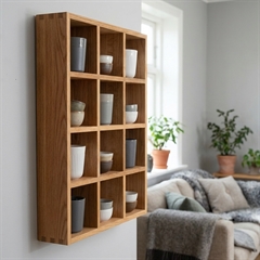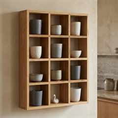 Debut sættekassen er udviklet helt specielt til udstilling af kopper og skåle i køkkenet. Denne model i 3x4 rum har 12 rum i alt.