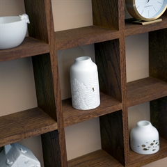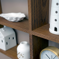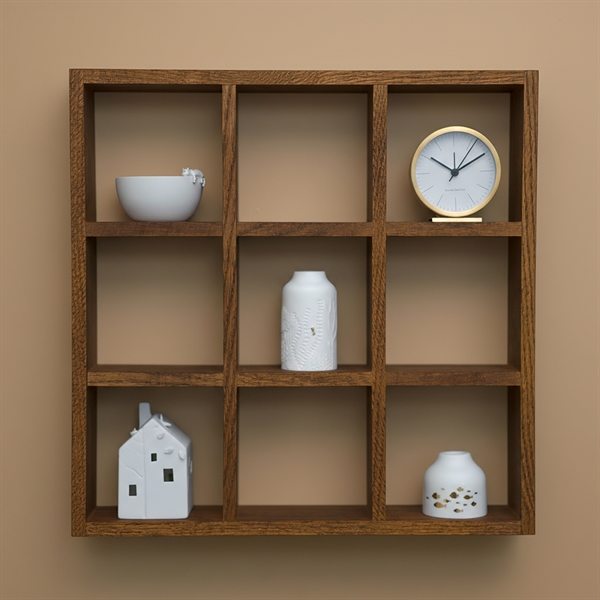 Den eksklusive Debut egetræshylde har plads til i alt 9 kopper. Debut sættekassen har tapsamlinger og er lavet i massivt mørkolieret egetræ.