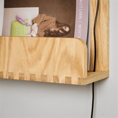 Det et lille hul i den ene side af sengebordet, både i bunden og i toppen, kan du nemt og enkelt trække et ladekabel til din telefon eller vækkeur op igennem.