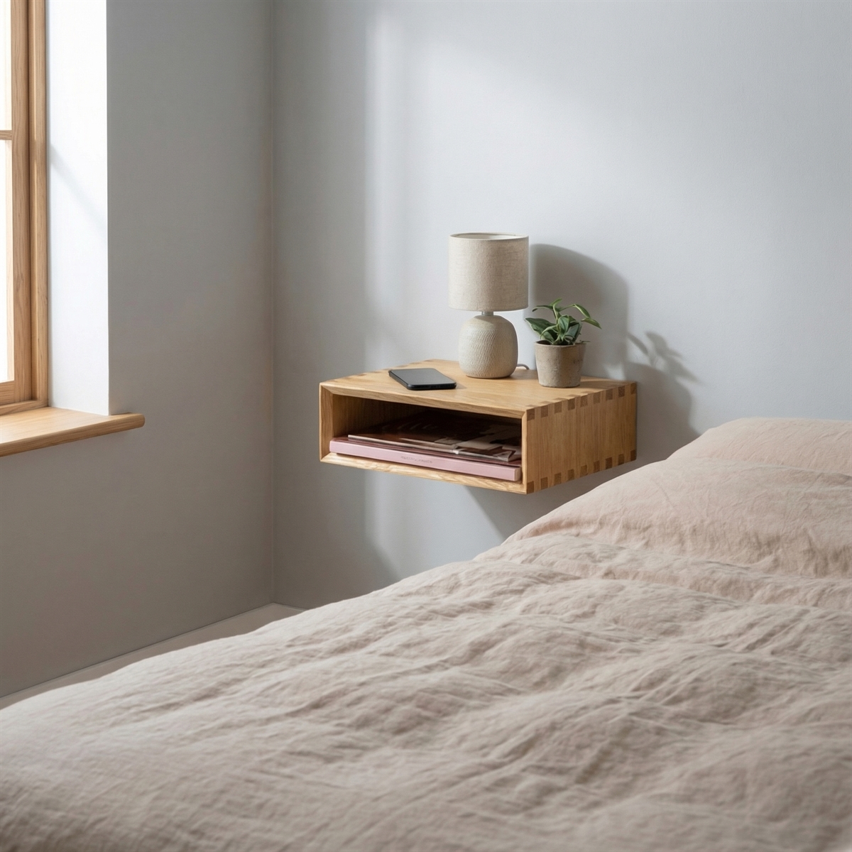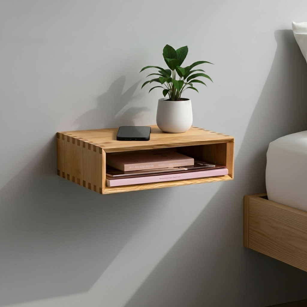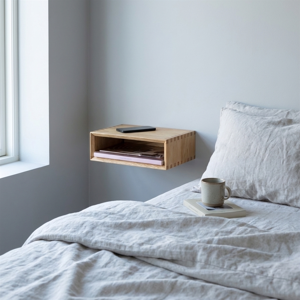 FEEL Væghylde/sengebord - En elegant tilføjelse til hjemmet fra LAKE serien i massivt rustikt egetræ.