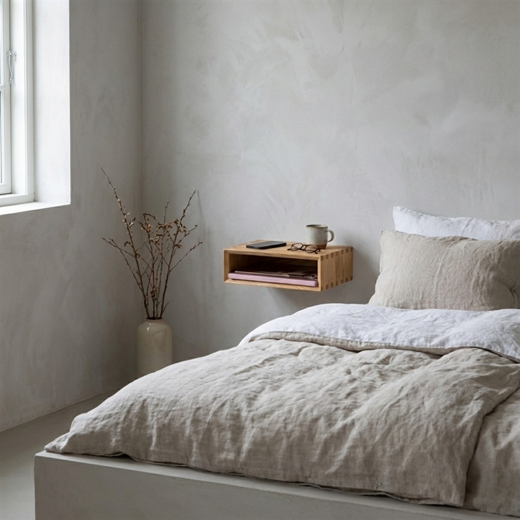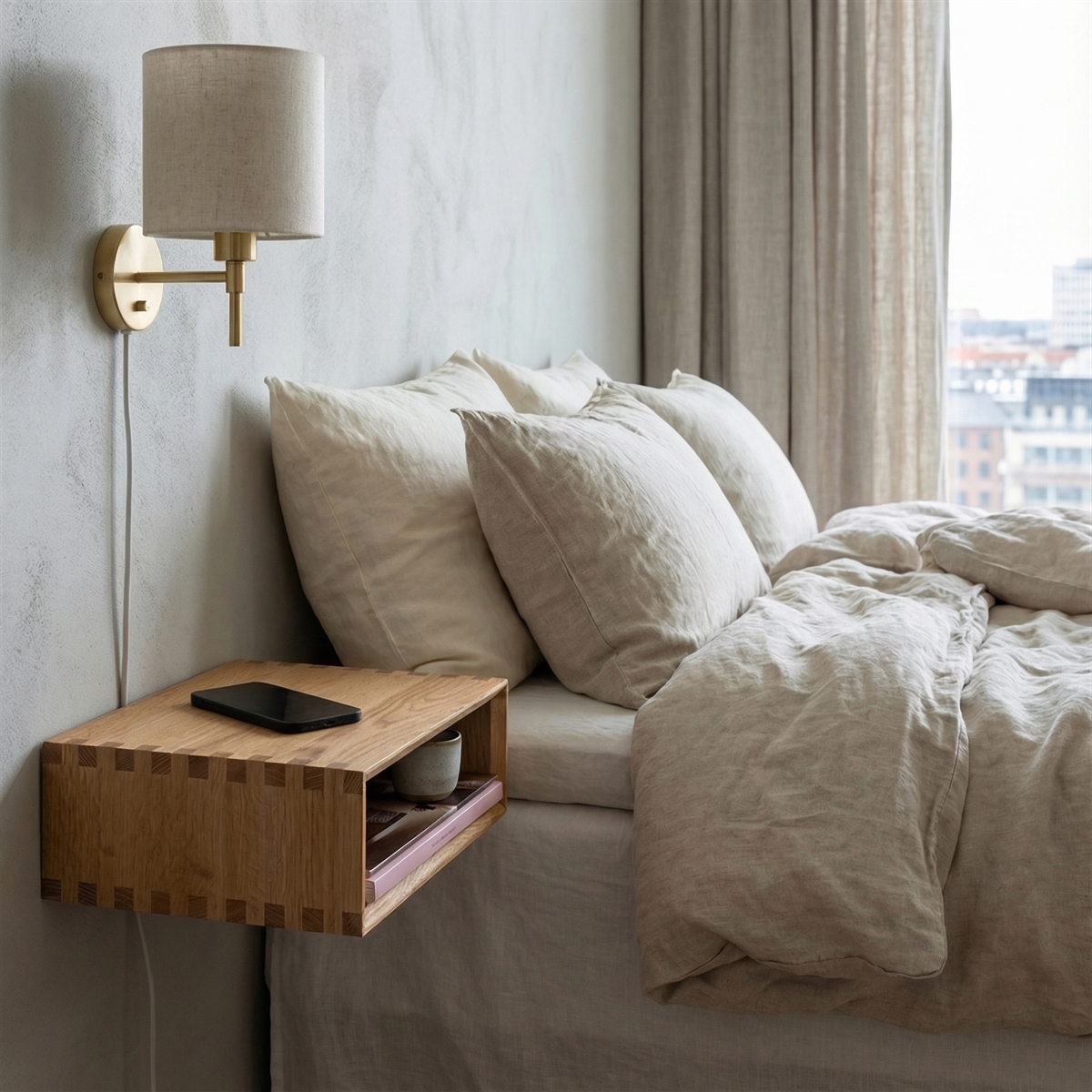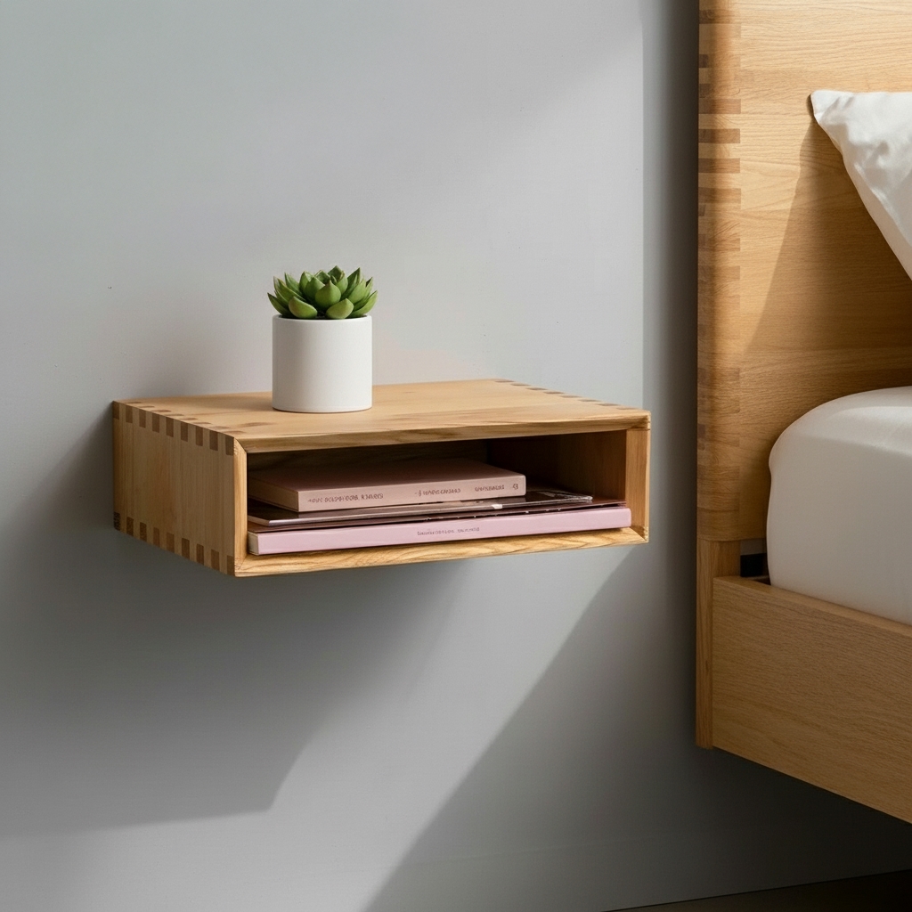 FEEL Væghylde/sengebord - En elegant tilføjelse til hjemmet fra LAKE serien i massivt rustikt egetræ.
