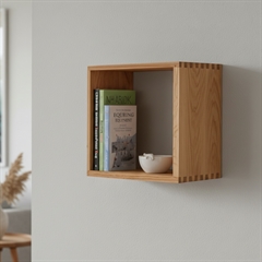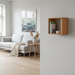 Kvadratisk vægkasse til udstilling af pyntegenstande fra vores egen serie Lake der er lavet i massivt olieret egetræ med tapsamlinger. Brug kassen i stue, værelse eller køkken til display af dine skatte.