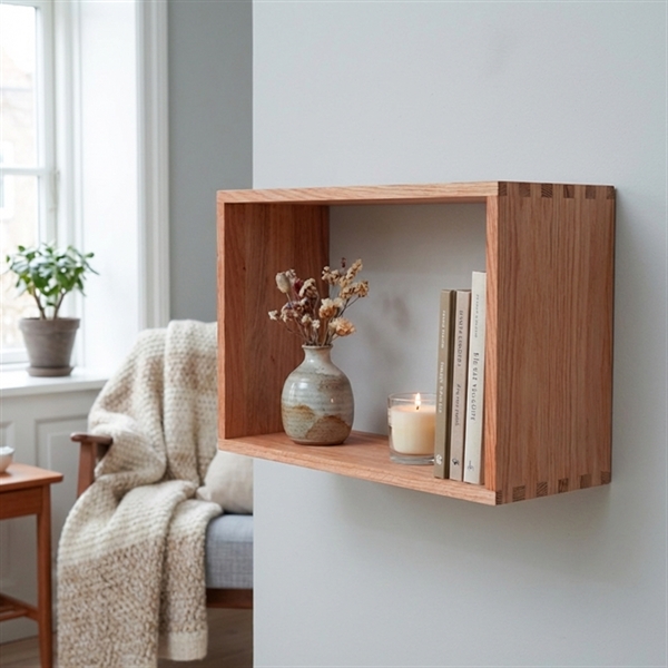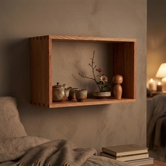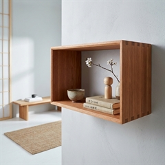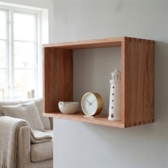 Vægkasse i massivt olieret egetræ i en rektangulær udgave til vægophæng. Det er en hylde i vores egen serie Lake der er lavet i massivt olieret egetræ med tapsamlinger. Brug den til udstilling af pyntegenstande overalt i boligen.