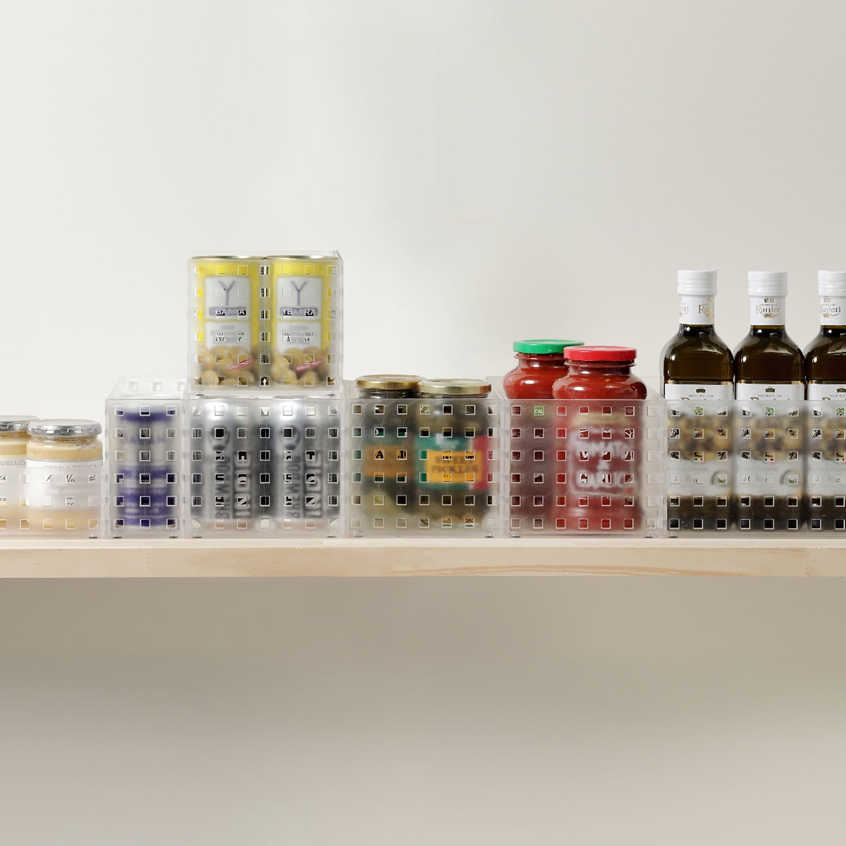 "Bricks" er en serie af stabelbare kasser i hård plast fra Like-It Japan.