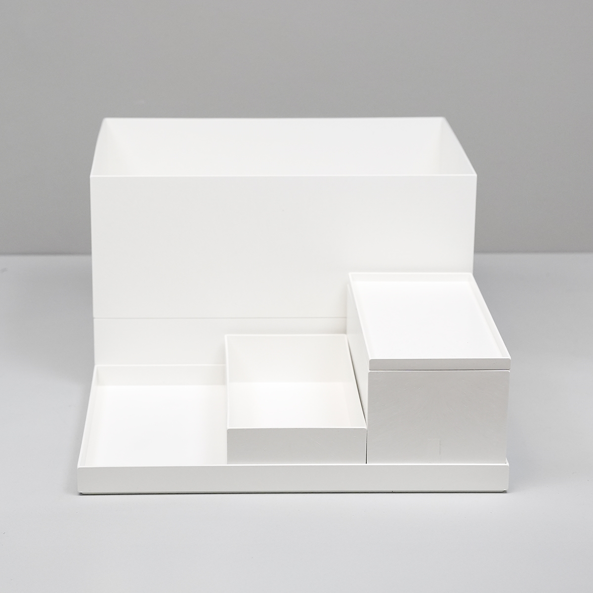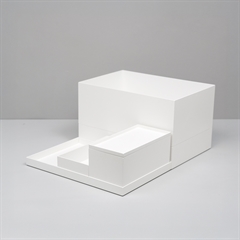 Like-It Tidy Up er en serie af stabelbare kasser i plast til organisering på kontor eller andre steder du har brug for at kunne sortere småting. Serien findes i både hvid og halv-gennemsigtig klar. Her køber du den hvide kasse i størrelse xsmall. Låg skal købes separat.