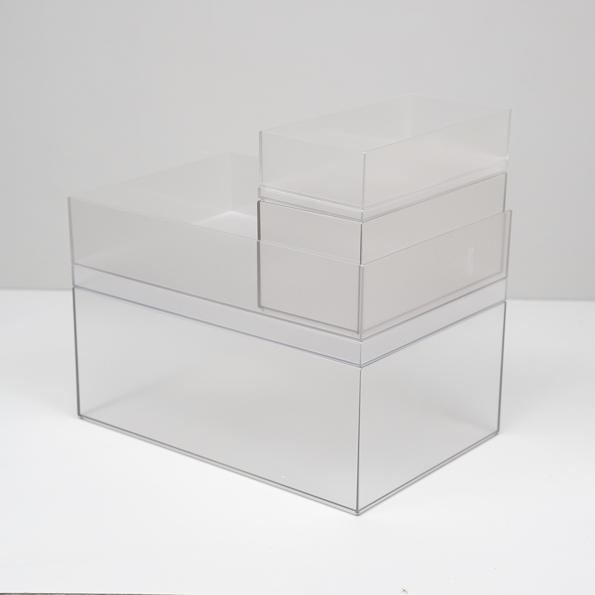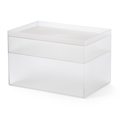 Like-It Tidy Up er en serie af stabelbare kasser i plast til organisering på kontor eller andre steder du har brug for at kunne sortere småting. Serien findes i både hvid og halv-gennemsigtig klar. Her køber du den klare kasse i størrelse small. Låg skal købes separat.