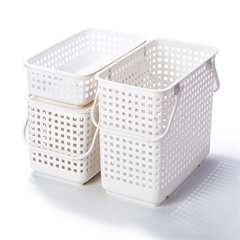 Kurvene kan stables på to måder - enten ved at sætte låg på den nederste, eller ved at sætte håndtagene indad, så kan der stables en ny kurv ovenpå.