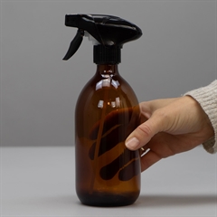 Ravfarvet glasflaske med spray, i genbrugsglas - 500 ml.