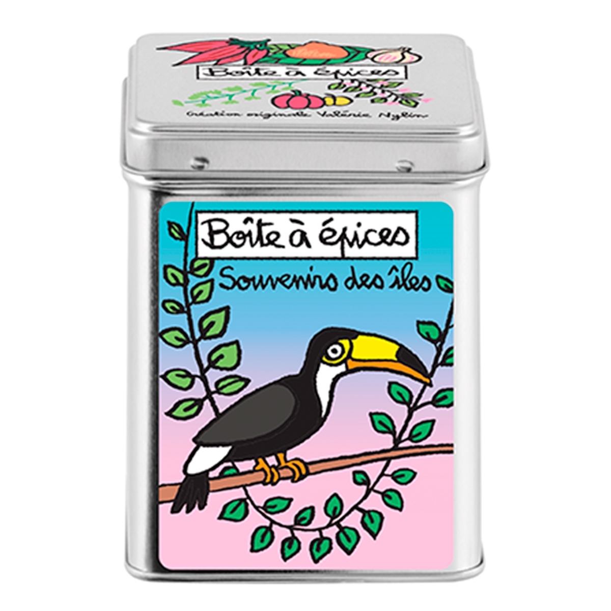 Metaldåse med låg til opbevaring af krydderier - Denne er til krydderier fra "Øerne".