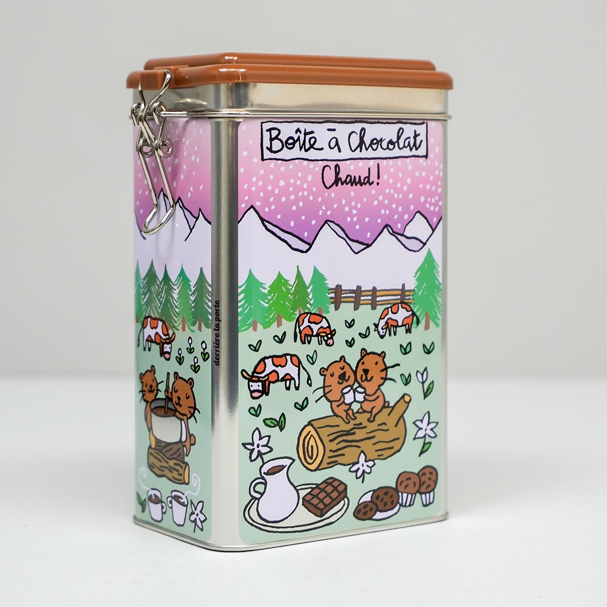Metaldåse du kan bruge til opbevaring af dit kakaopulver. Fra Derrière la Portes univers af farvestrålende fødevaregodkendte metaldåser der gør dit køkken mere farverigt og hyggeligt.