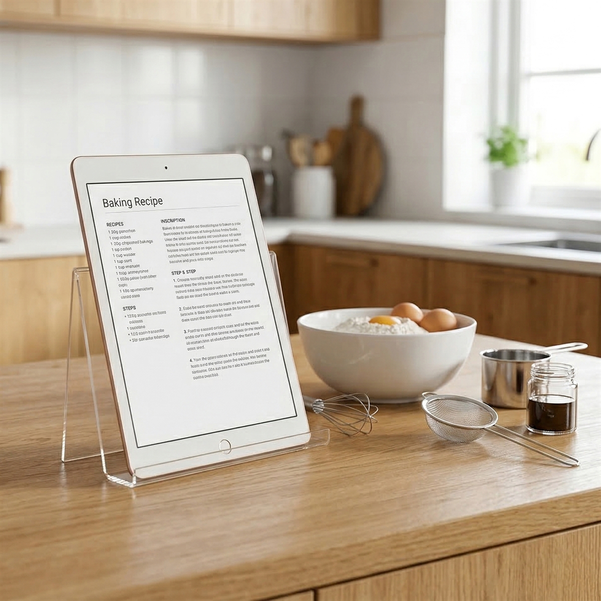 Perfekt til at holde kogebøger eller din iPad når du laver mad. Kan også bruges til at udstille din yndlingsbog i et stilleben.