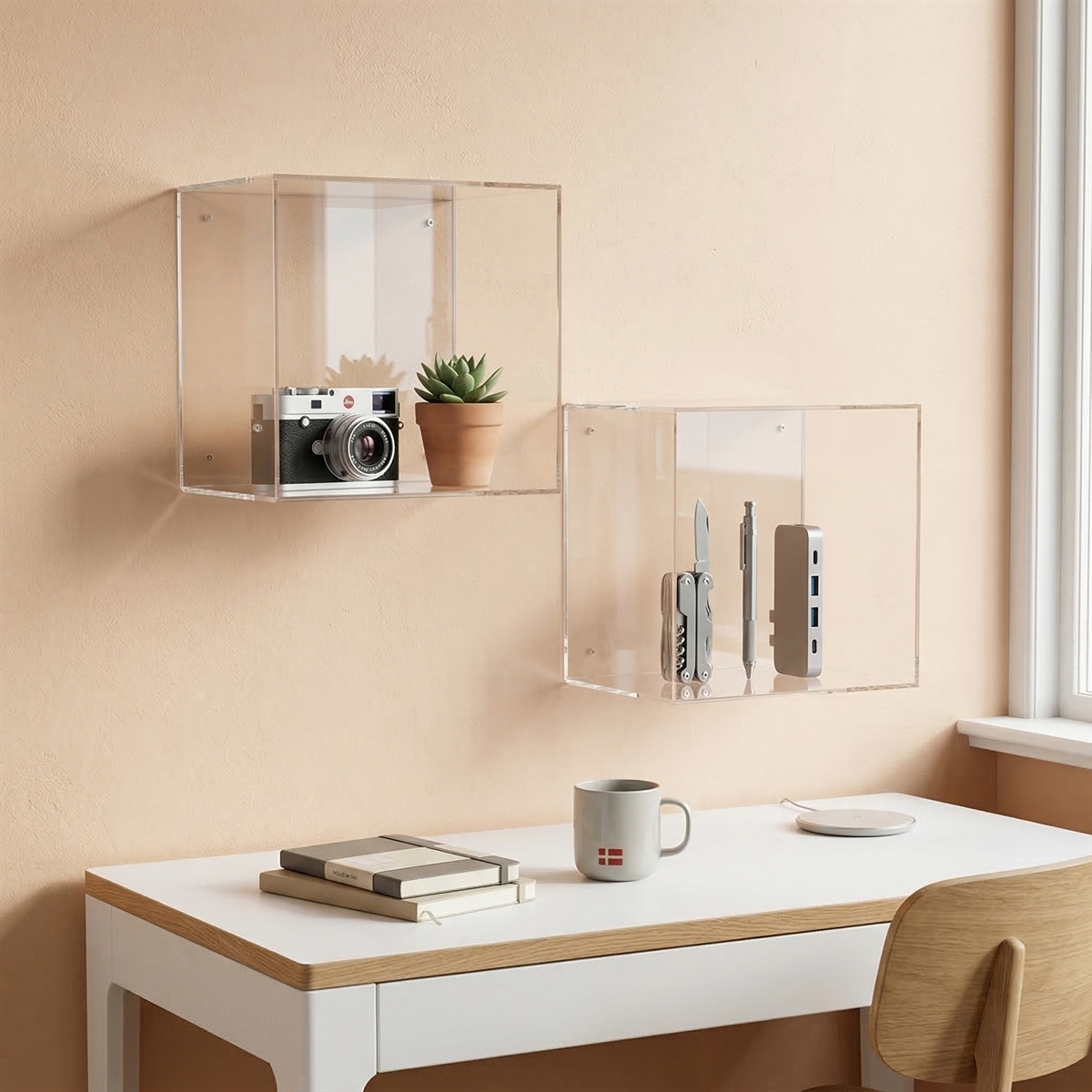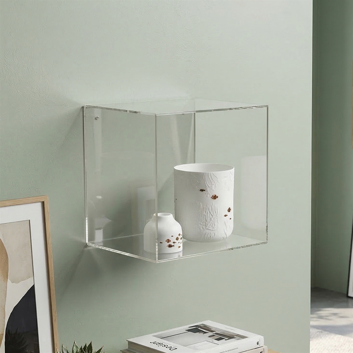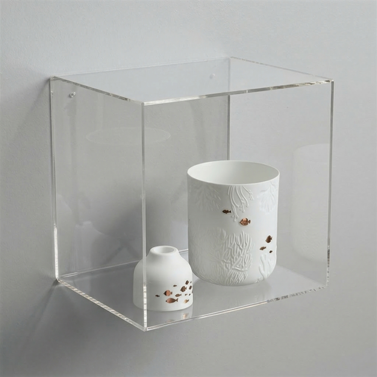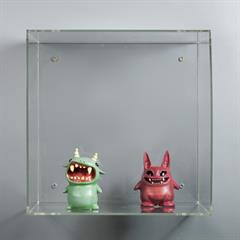 Kvadratisk akrylkasse til udstilling og opbevaring på væggen.