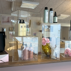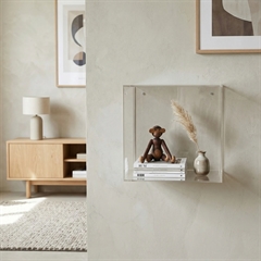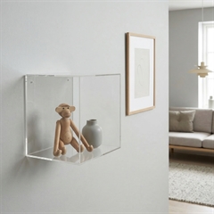 En smuk og stilren kasse lavet i klar akryl. Kassen har huller i hvert hjørne på bagsiden, så du kan hænge den op på væggen og udstille pynteting. Kassen er helt åben i fronten