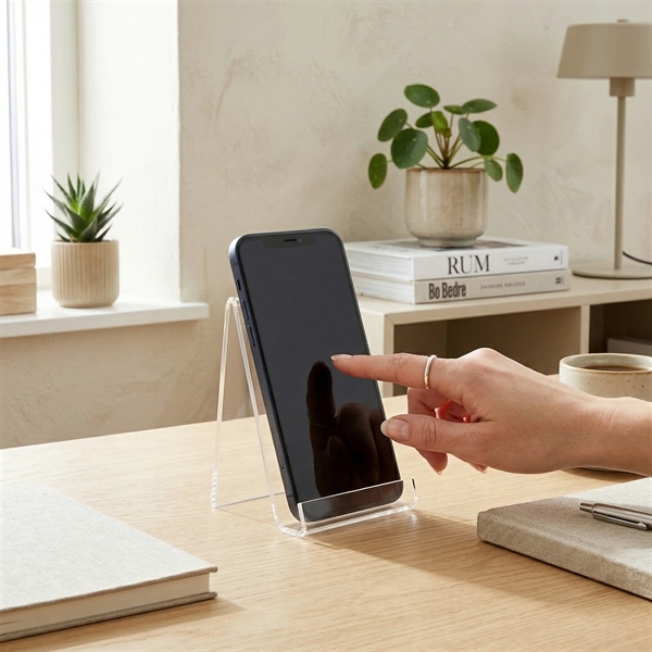 Holder til at sætte mobiltelefonen i, lavet i klar akryl.