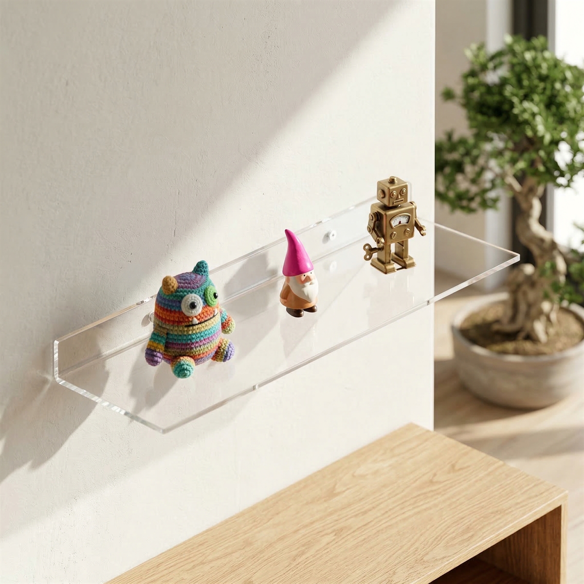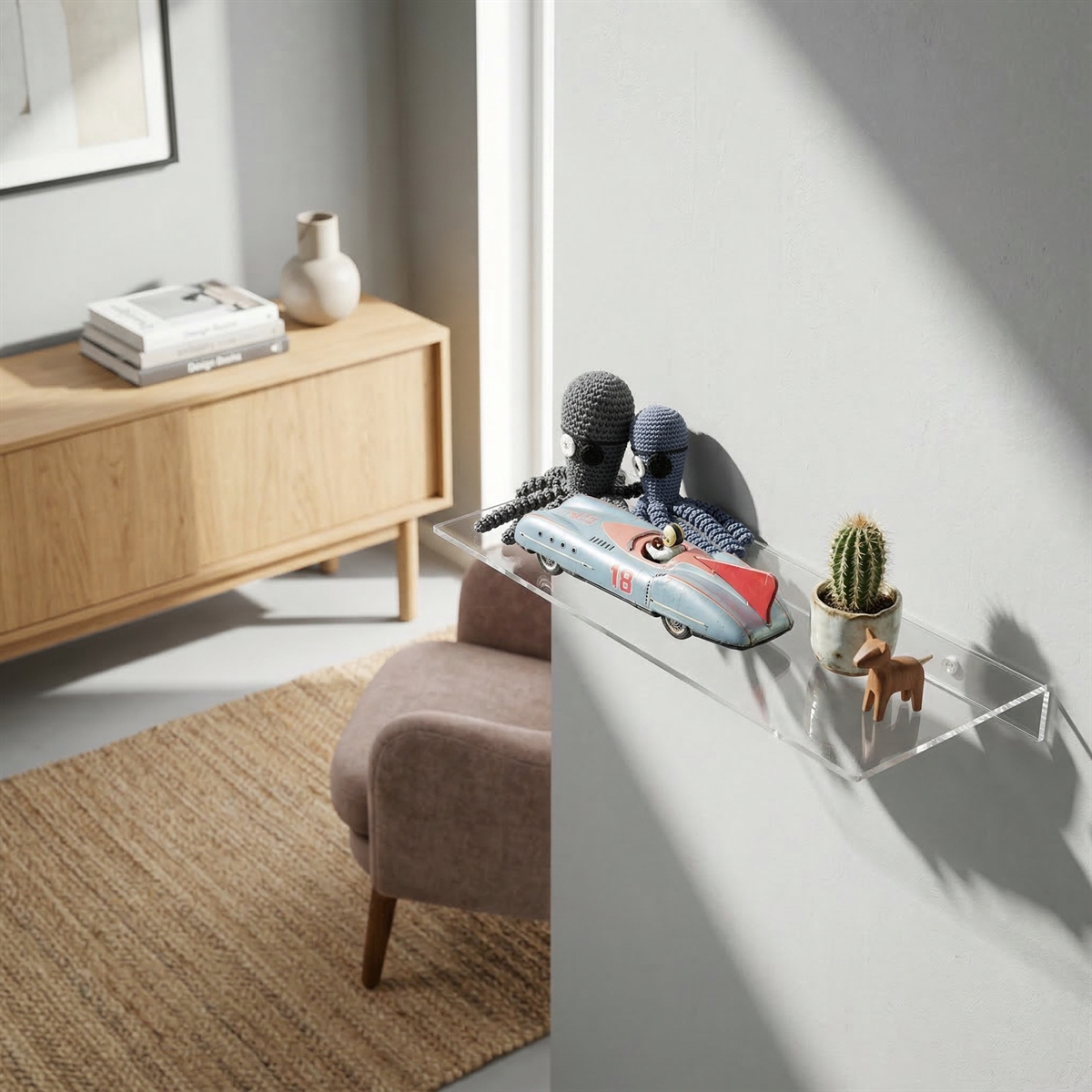 Modena hylde lavet i klar akryl til dekoration i hjemmet.