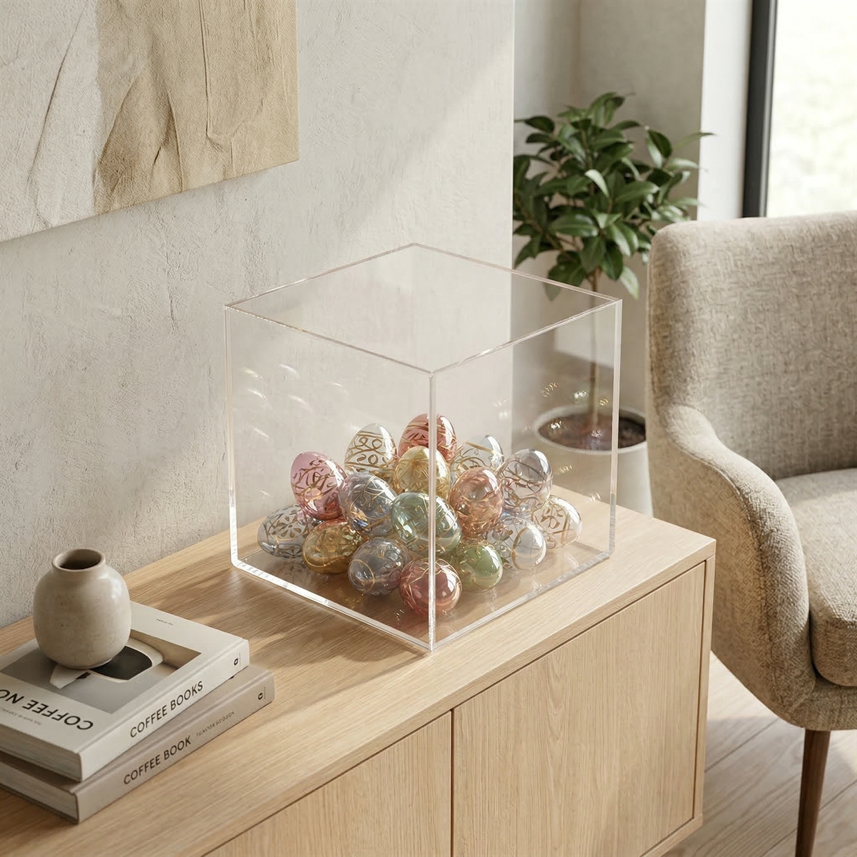 Den af en serie af kvadratiske kasser i akryl - dette er den største.