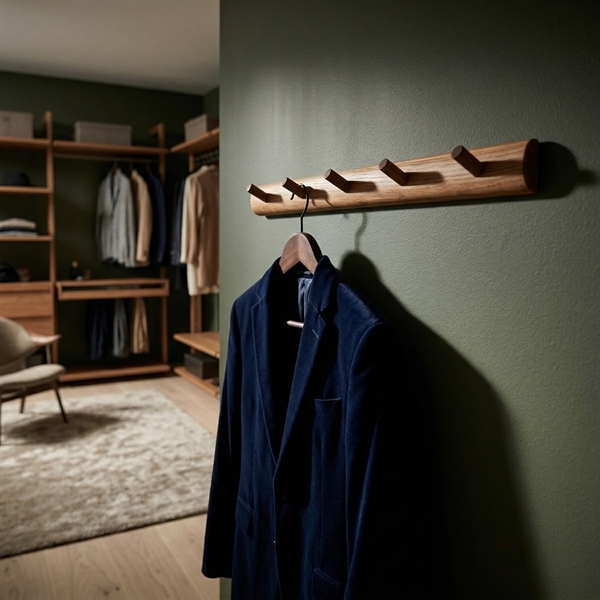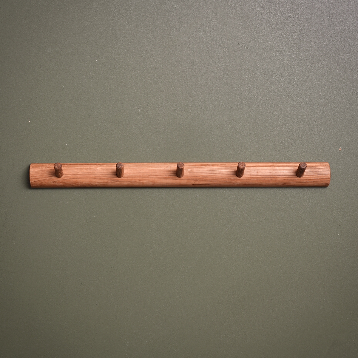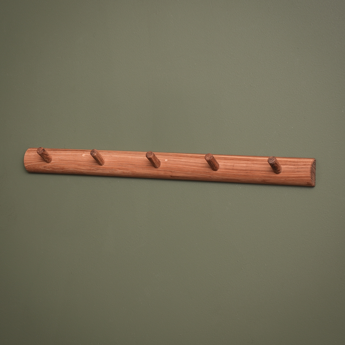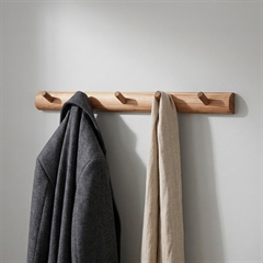 Knagerækken er lavet i rent egetræ med skjulte ophæng på bagsiden for et helt enkelt udtryk.
