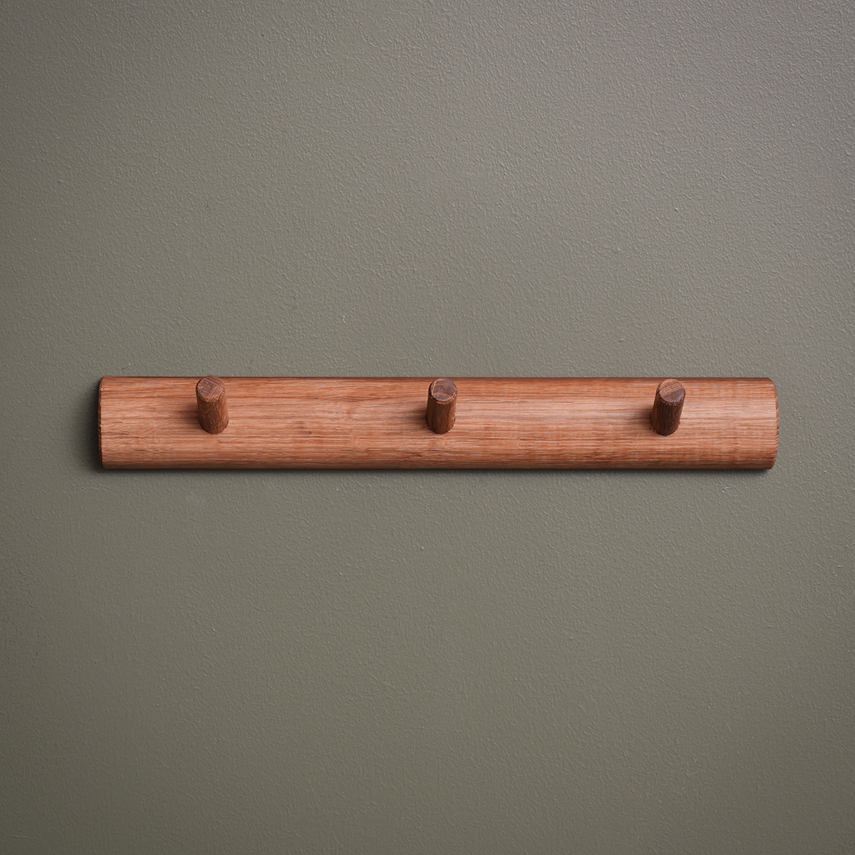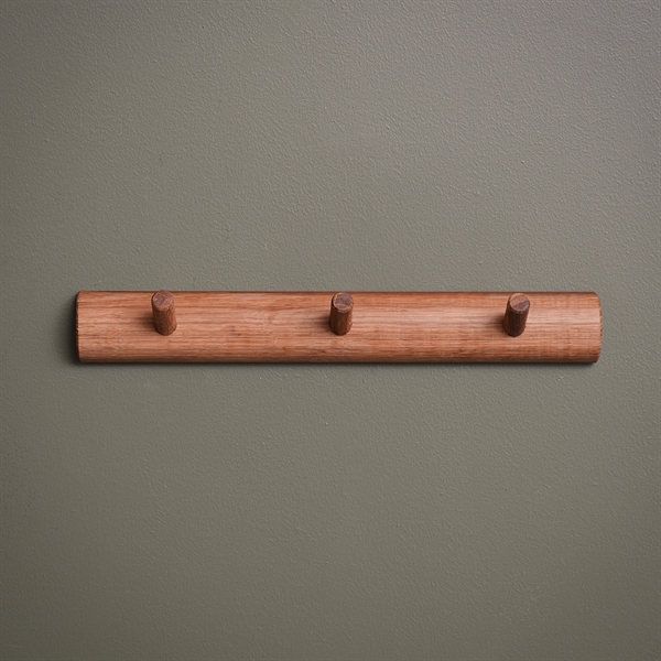 Den lille knage er lavet i ren egetræ med skjulte ophæng på bagsiden for et helt enkelt udtryk.