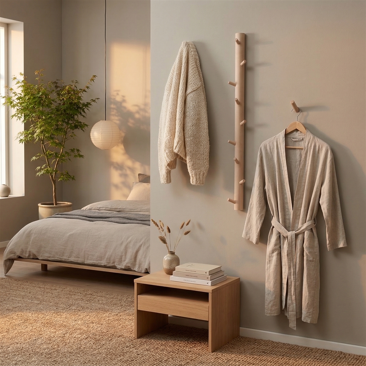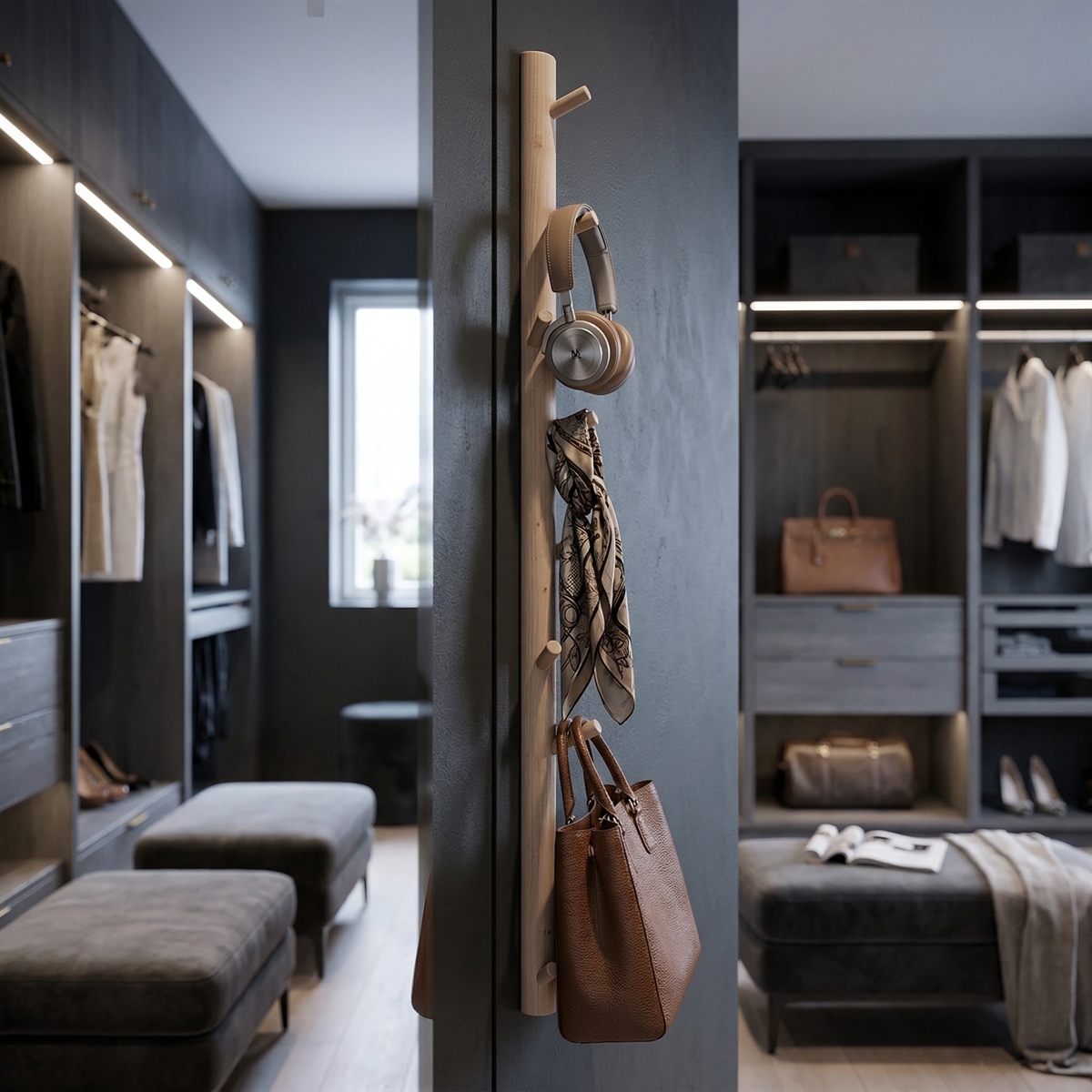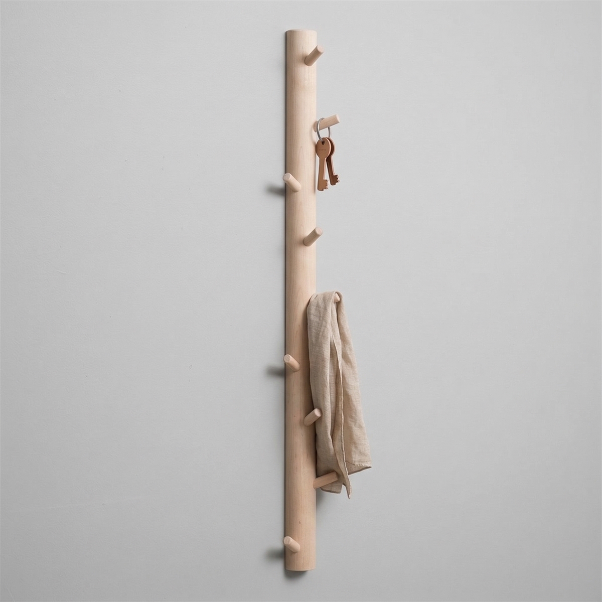 Vertikal knagerække til hjemmet. Fremstillet af rent lyst birketræ med 9 knager