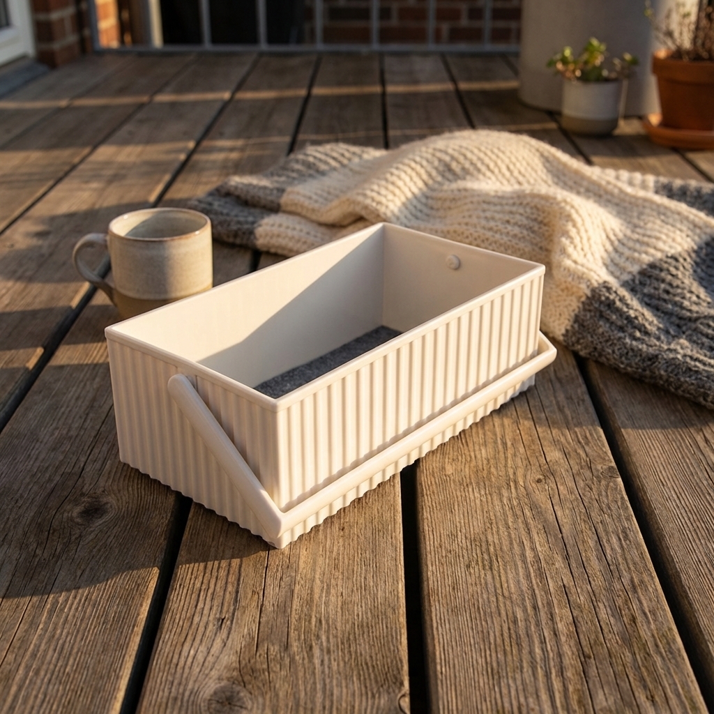Kassen er lavet i blødt slidstærkt plast med en filtpude i bunden og hank så du let kan flytte den rundt i hjemmet.