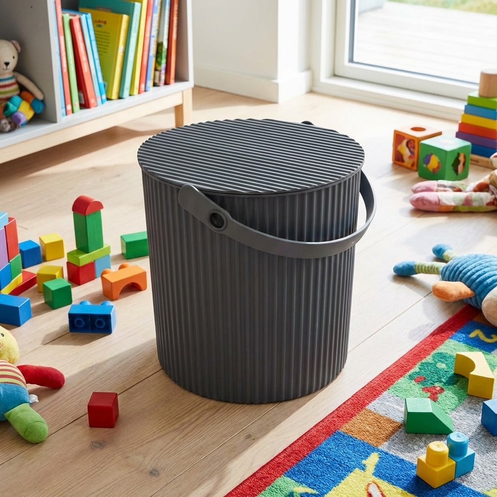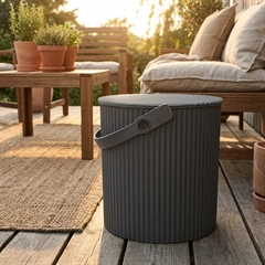 Omnioutil plastikspand i en klassisk mørkegrå farve med samme farve låg.