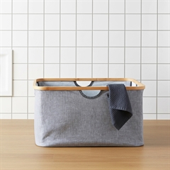 Stilren opbevaringskurv lavet i grå polyester og bambus.