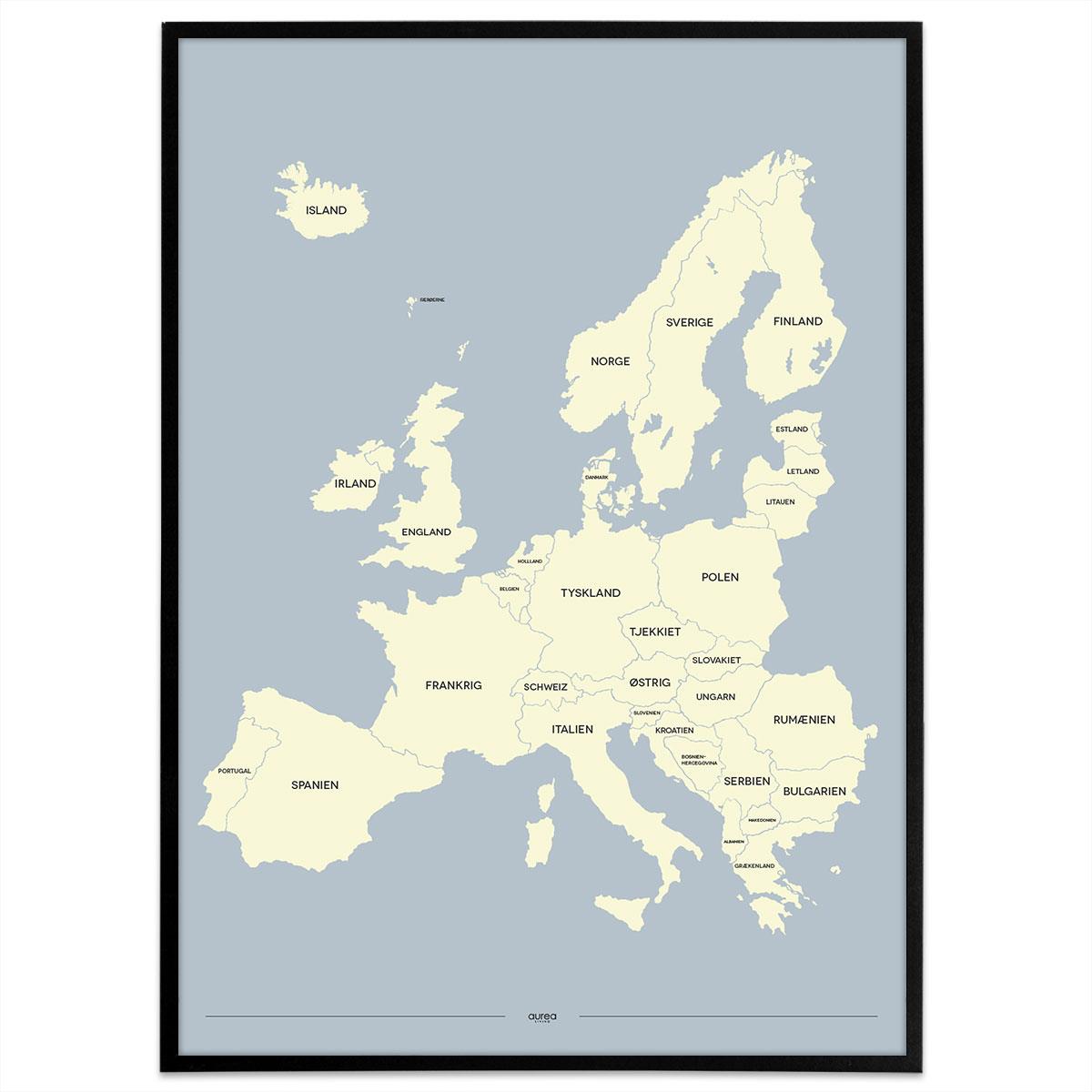 Denne plakat med europakort er lavet i flotte lyse nuancer af gul og blå.