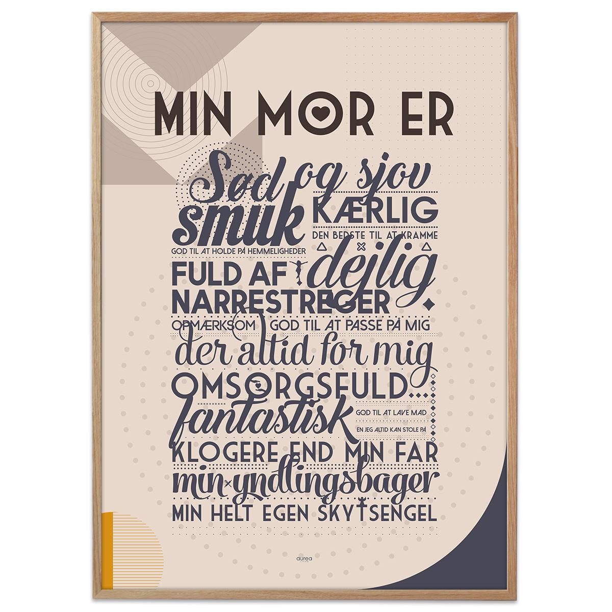 Plakat med tekster og citater om Mor. Mor, der er sød, sjov, omsorgsfuld, stærk, sej og bare alletiders.