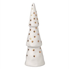 Pakke med fire stk juletræer i porcelæn fra Räder. Juletræerne er lavet i hvidt porcelæn med gulddetaljer. Fire juletræer med forskellige designs og motiver findes i pakken. Lav et smukt julelandskab med disse fine juletræer og andre ting fra Räders omfattende julekollektion