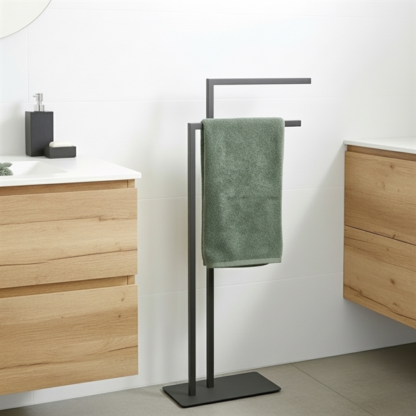 Stilren håndklædeholder til at have stående på gulvet på badeværelset, så du slipper for at bore huller i væggen.