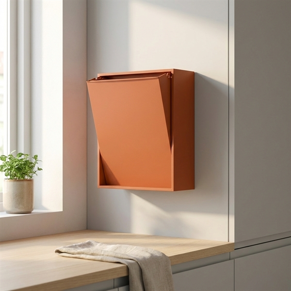 Væghængt box til affaldssortering i en Nordic Sunset / orange nuance.