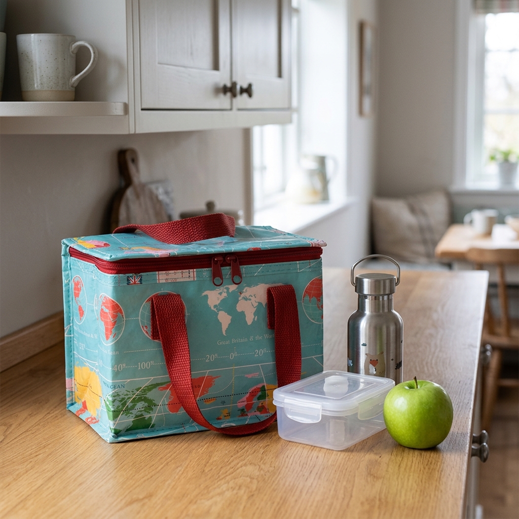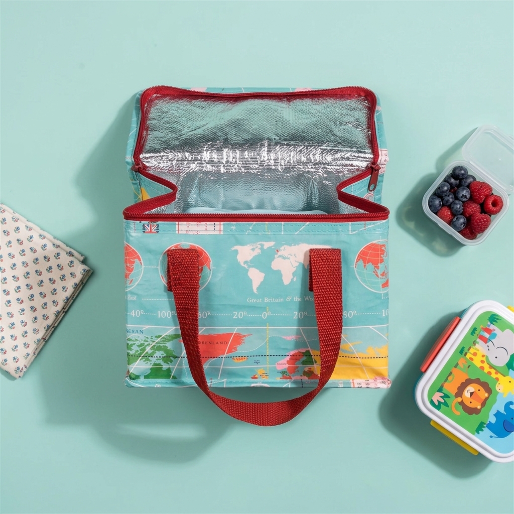 Rex London køletaske til madkassen - her i designet med verdenskort