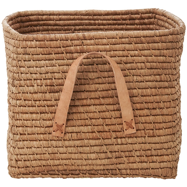 RICE Raffia kurv med læderhanke - TEA