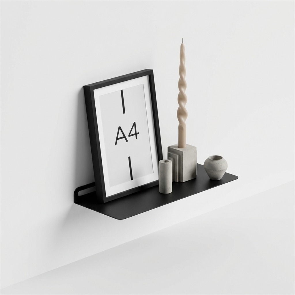Stilren sort hylde lavet i et simpelt og dekorativt design til hjemmet. Perfekt til opbevaring, pynt i stuen, entréen, køkkenet eller på værelset.