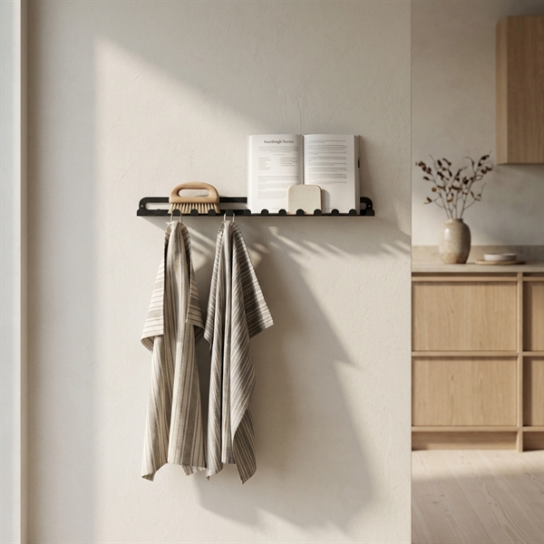 Stilren smal knagerække i mat sort metal - 40 cm. bred.