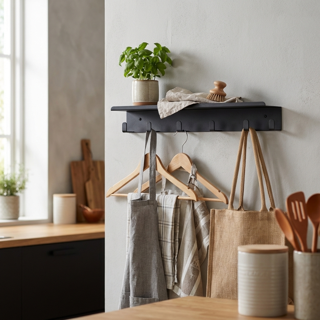 Brug knagerækken i entréen til tasker, tørklæder og nøgler. Eller i køkkenet til køkkenredskaber, viskestykker og krydderier.