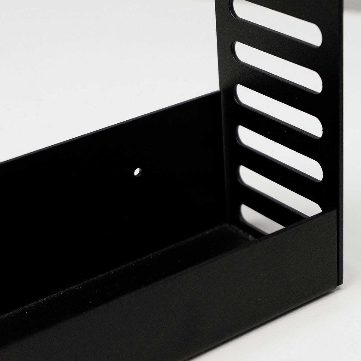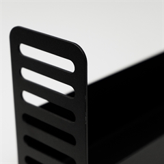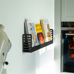 Kogebogshylden er lavet i metal med en mat sort pulverlakering. Flot og funktionel hylde til væggen.