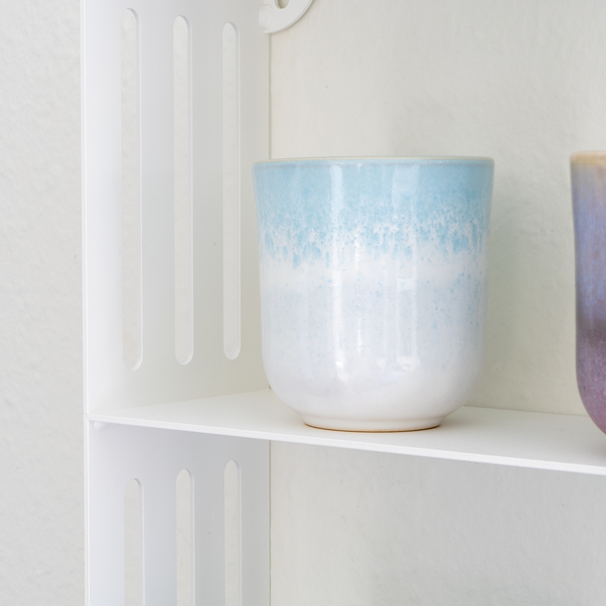 Hylden er designet til kopper men kan sagtens bruges i hjemmets andre rum til f.eks. parfumer og pynt på badeværelset, til småting og pynt på værelset eller til små pynte- og kontorting på kontoret.