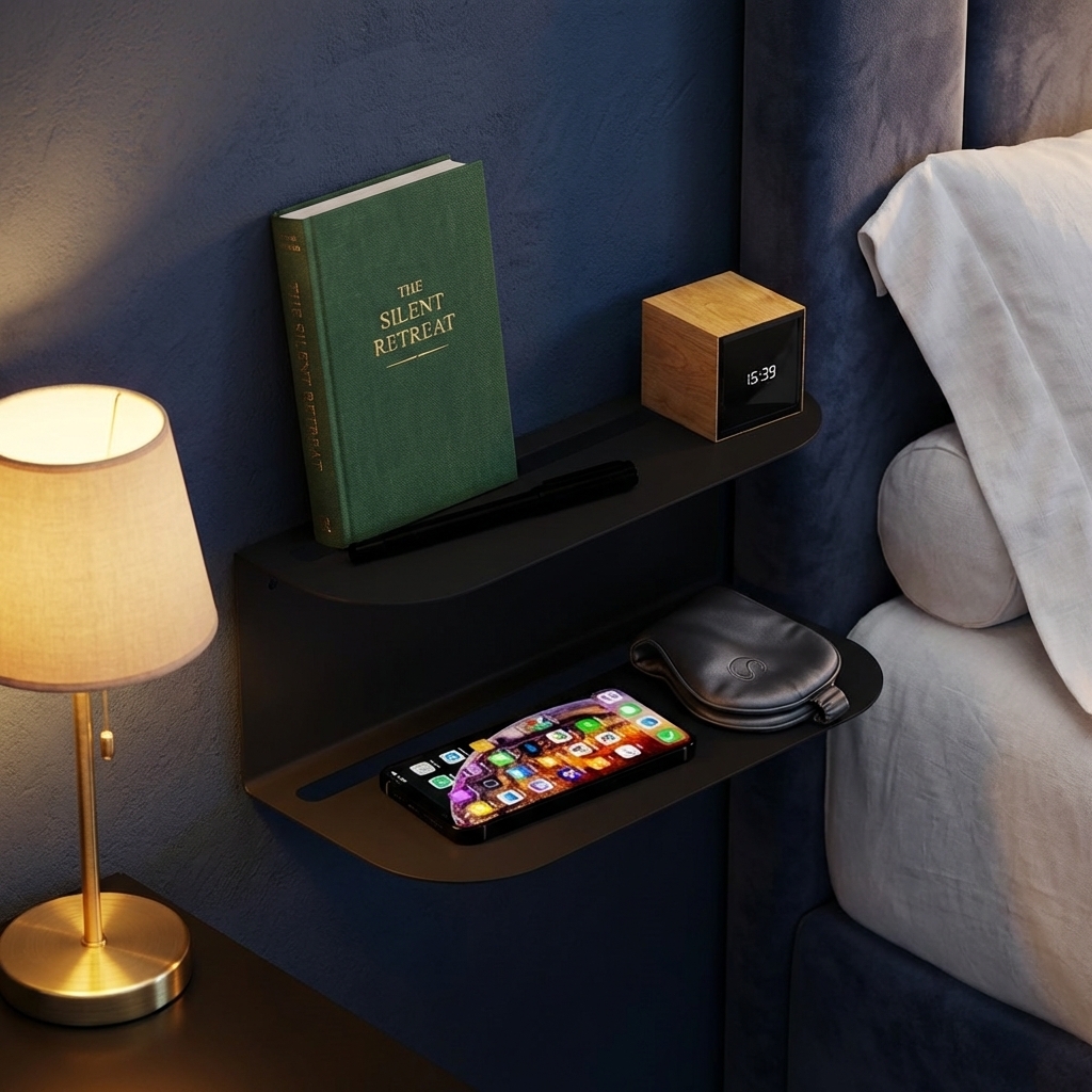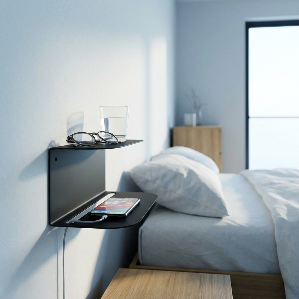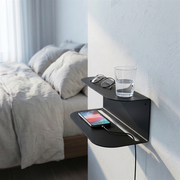 Et stilrent og funktionelt lille natbord til at hænge på væggen.