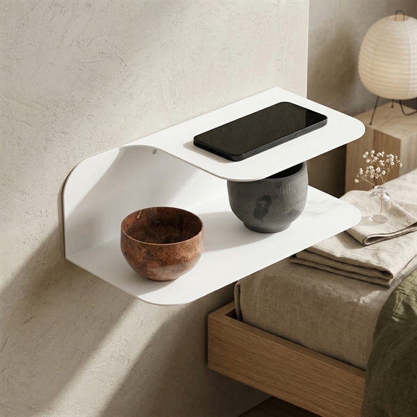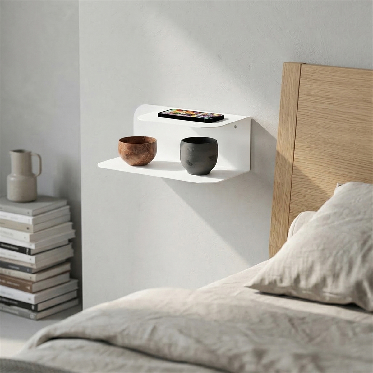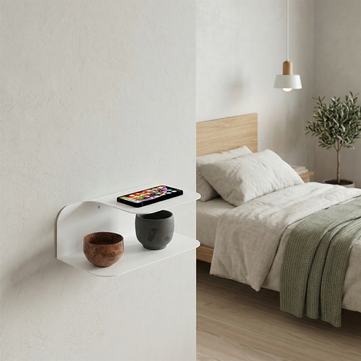 Et lille stilrent natbord til at hænge på væggen ved siden af sengen. - Dette er model "B" Der er åben i venstre side.