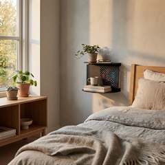 Taito natbord til at hænge på væggen ved siden af sengen. Lækkert design med afrundede kanter der giver sengebordet et blødt udtryk.