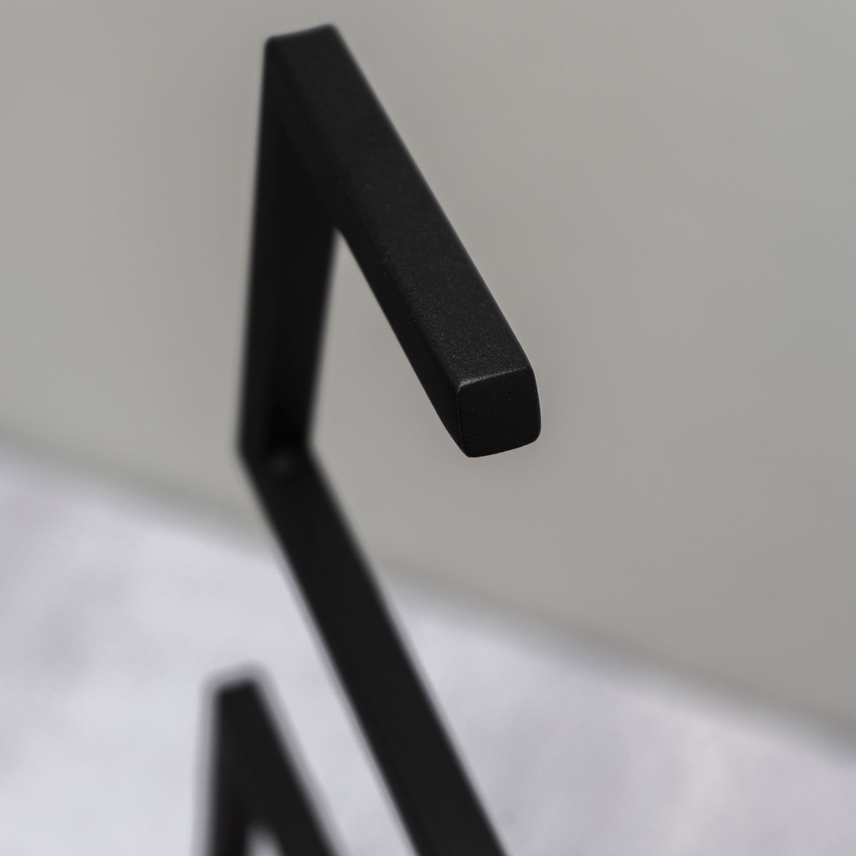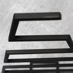 Lavet i massiv stål der er blevet pulverlakeret i en mat sort farve med struktur.