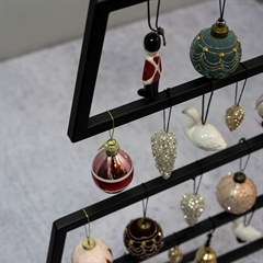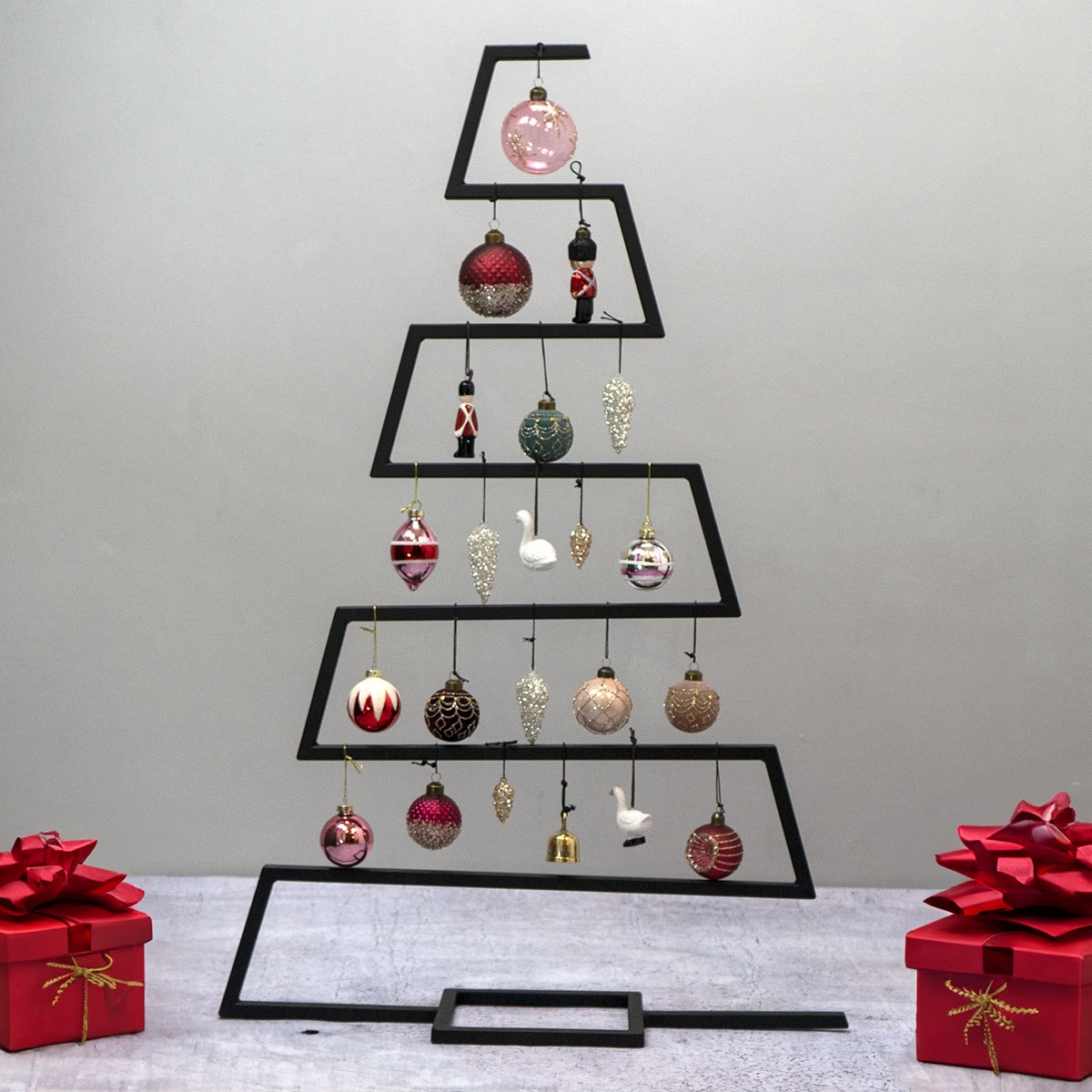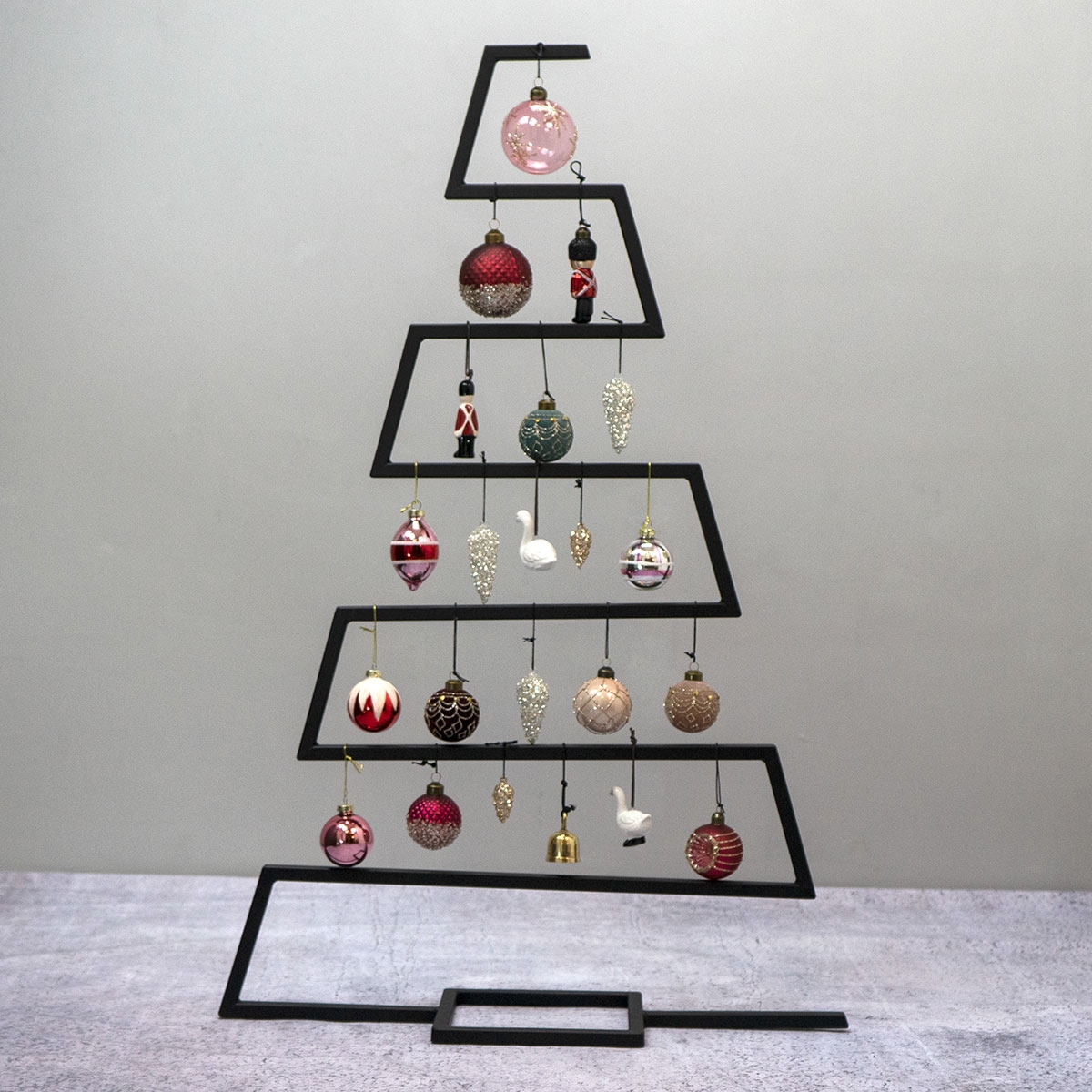 Dekorativt metaltræ til ophæng af julekugler og pynt i den søde juletid.