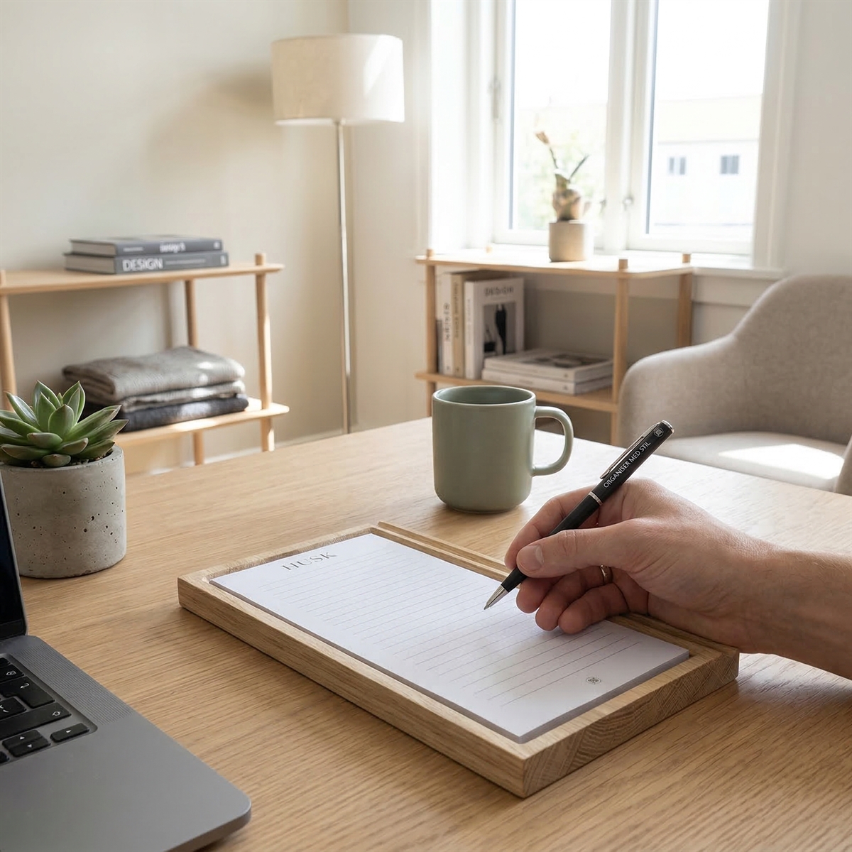 Bakken er udviklet til vores M65 notesblokke. For stilren opbevaring af din skrive- og huskeblok så du altid har den og en kuglepen lige ved hånden.