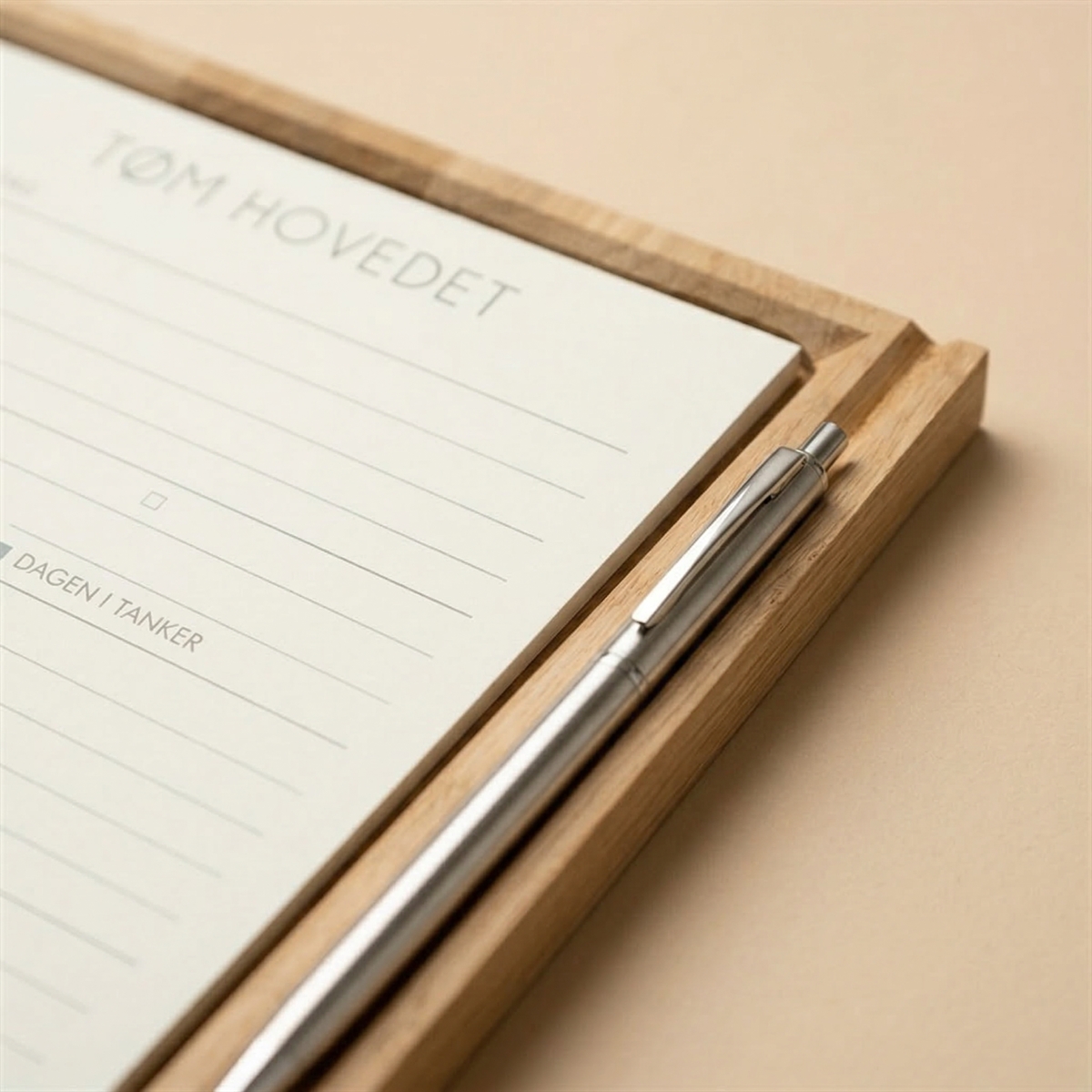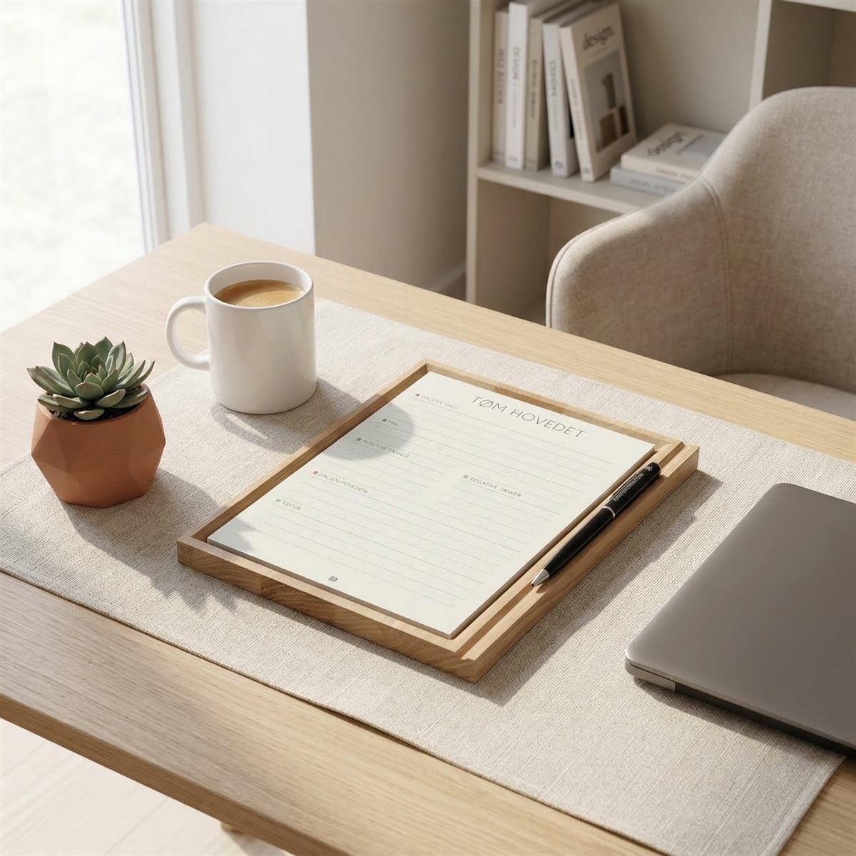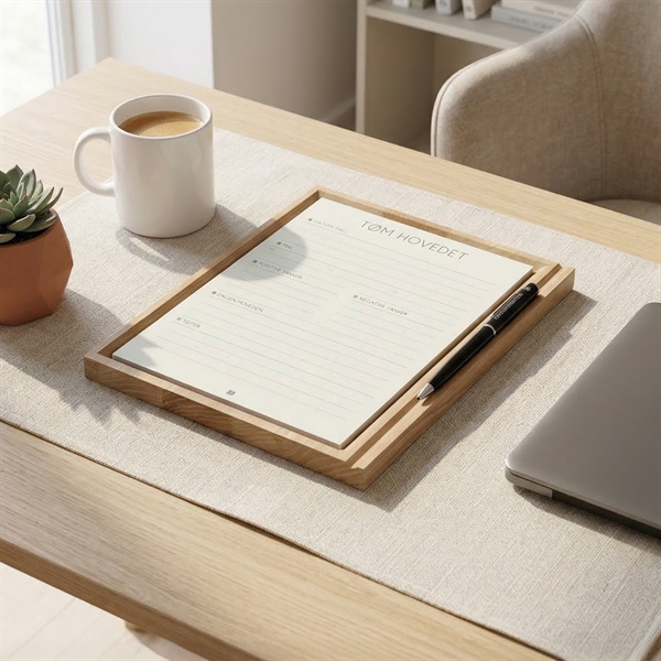 - For stilren opbevaring af din skrive- og huskeblok så du altid har den og en kuglepen lige ved hånden.