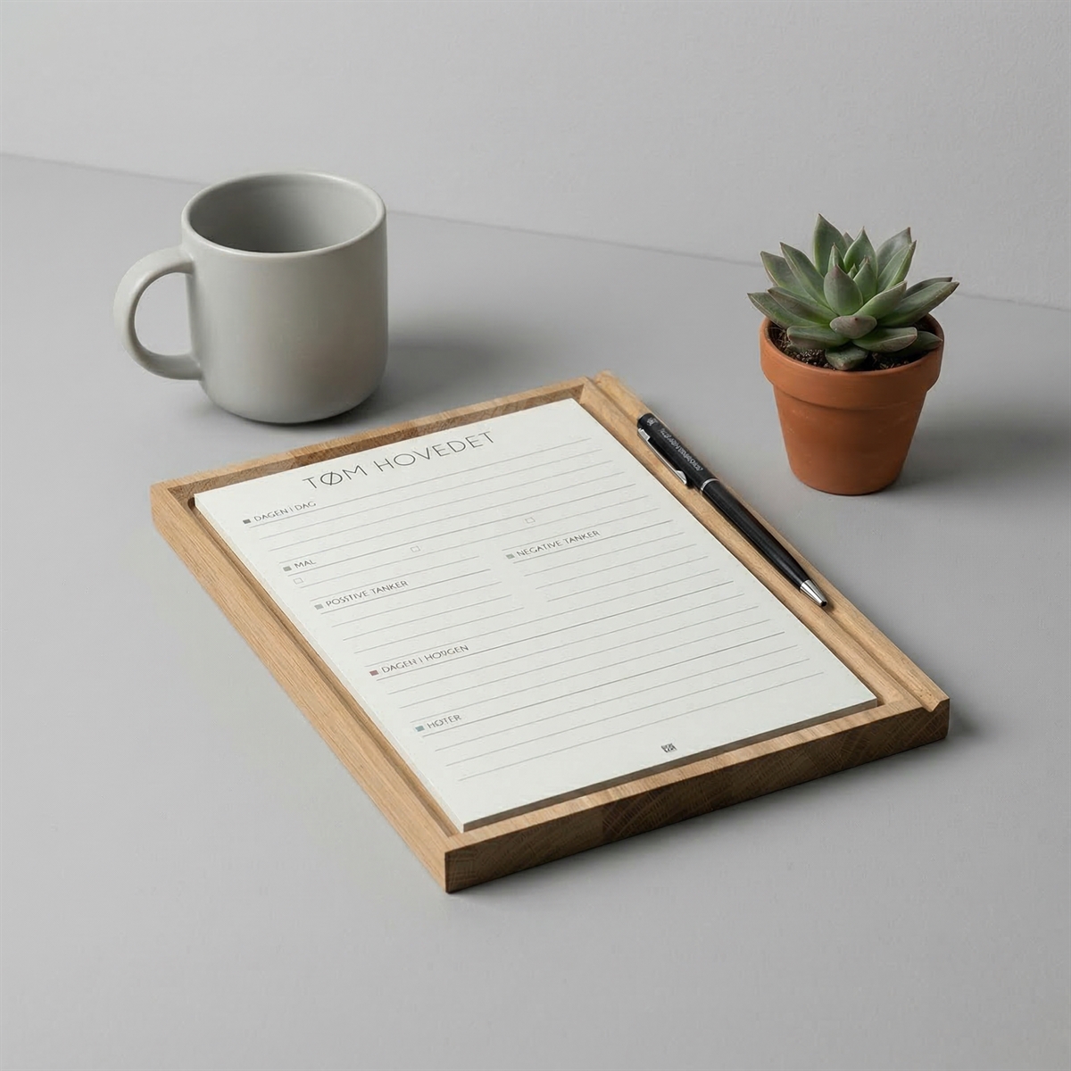 Bakke i egetræ til A5 blok og kuglepen, fra vores egetræsserie - Siena.