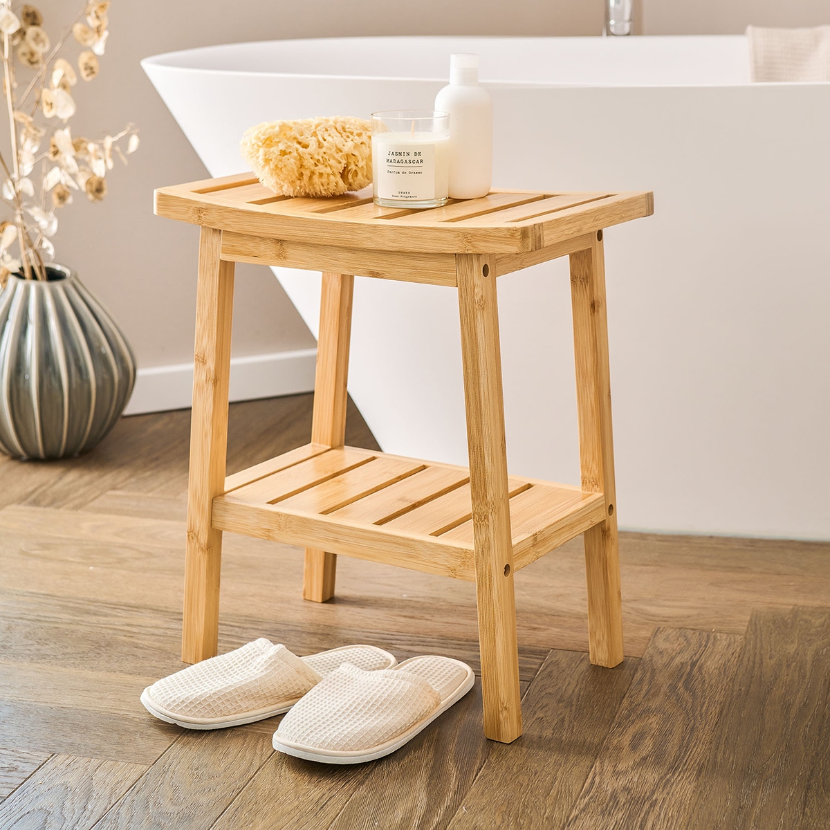Skammel i naturmaterialer du kan bruge på badeværelset, i soveværelset eller hvor du ellers har brug for en ekstra siddeplads, sidebord eller afsætningsplads. Et lille praktisk møbel i et klassisk og stilrent design