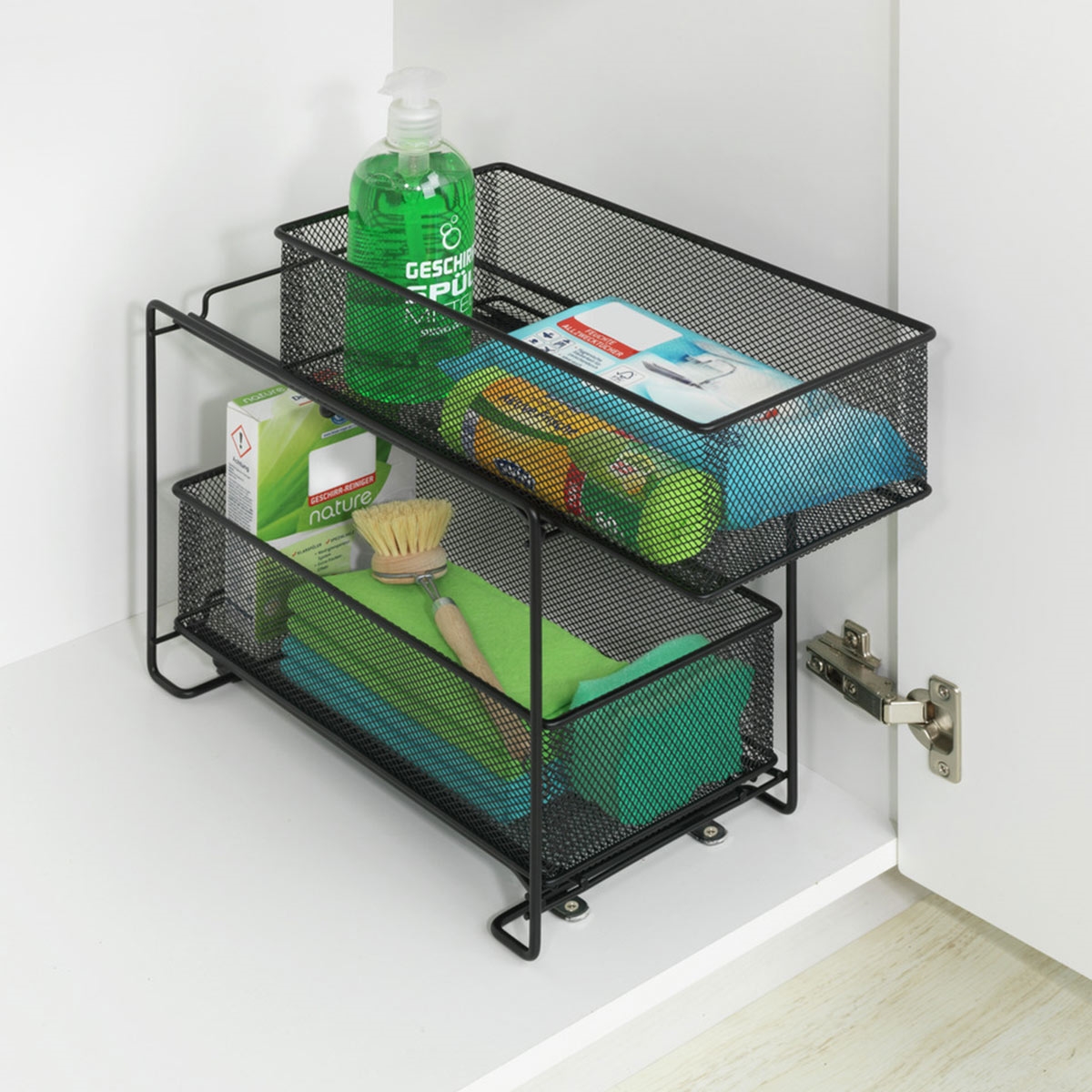 Skuffemodul med 2 trådkurve. Produktet er lavet i metal med en sort pulverlakering og kan bruges til opbevaring i hele hjemmet.