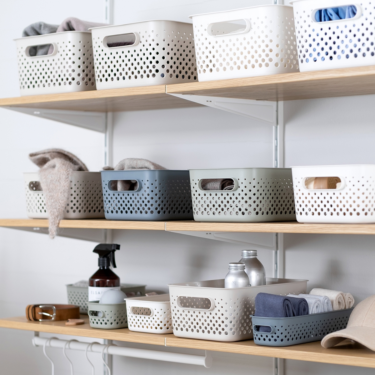 SmartStore Essence er en serie af kurve i genbrugplast i et design med huller, så du kan se indholdet.